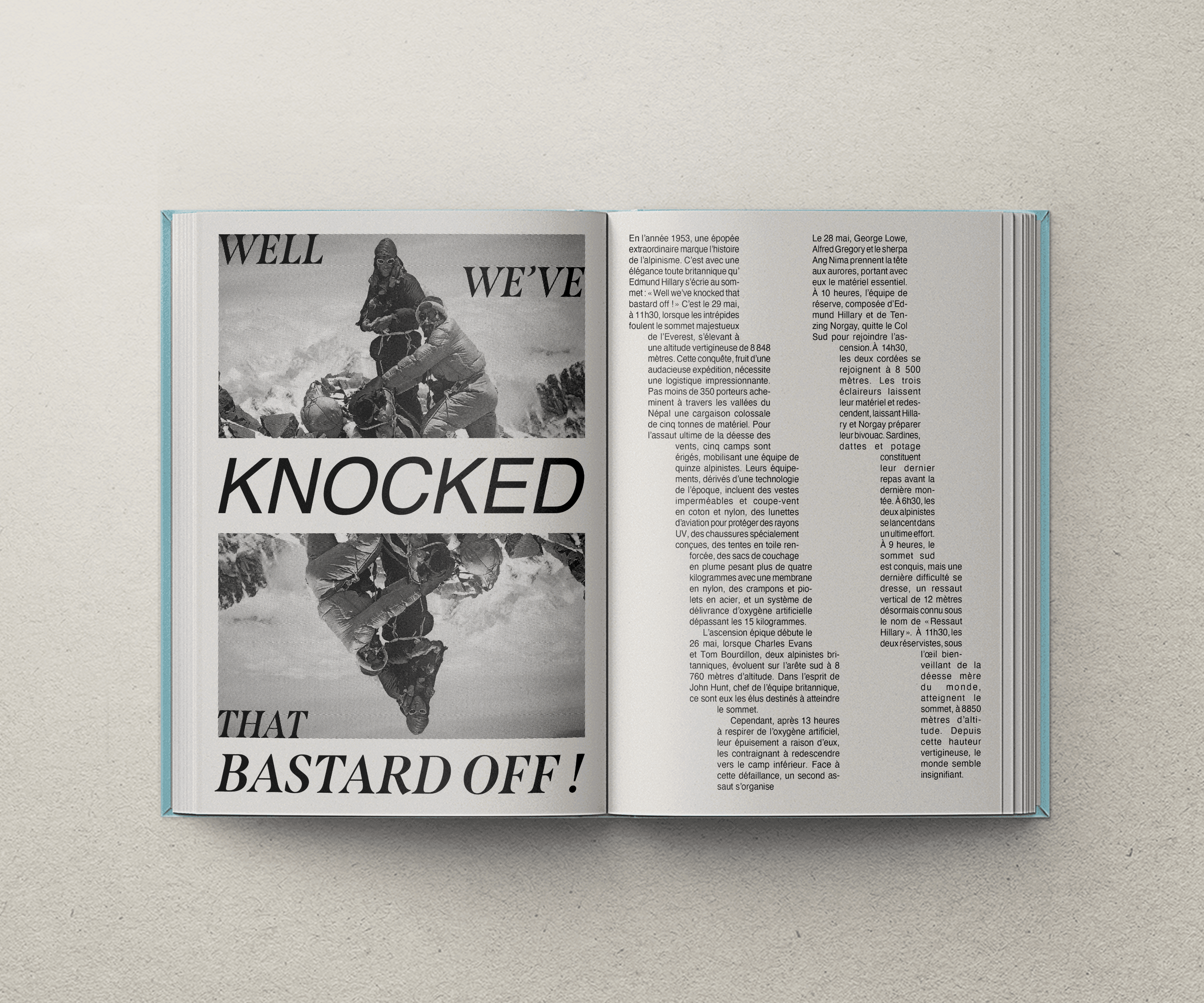The design direction, developed in collaboration with Enzo Rotunno, sought to immerse the reader in a contemplative journey: typography fading like distant peaks, fragmented compositions, layered textures, and subtle 3D elements creating an atmosphere between silence and awe. "Ascension" stands as both a tribute and an exploration, inviting the reader to sense the spiritual bond between man and mountain — a link older than memory itself.