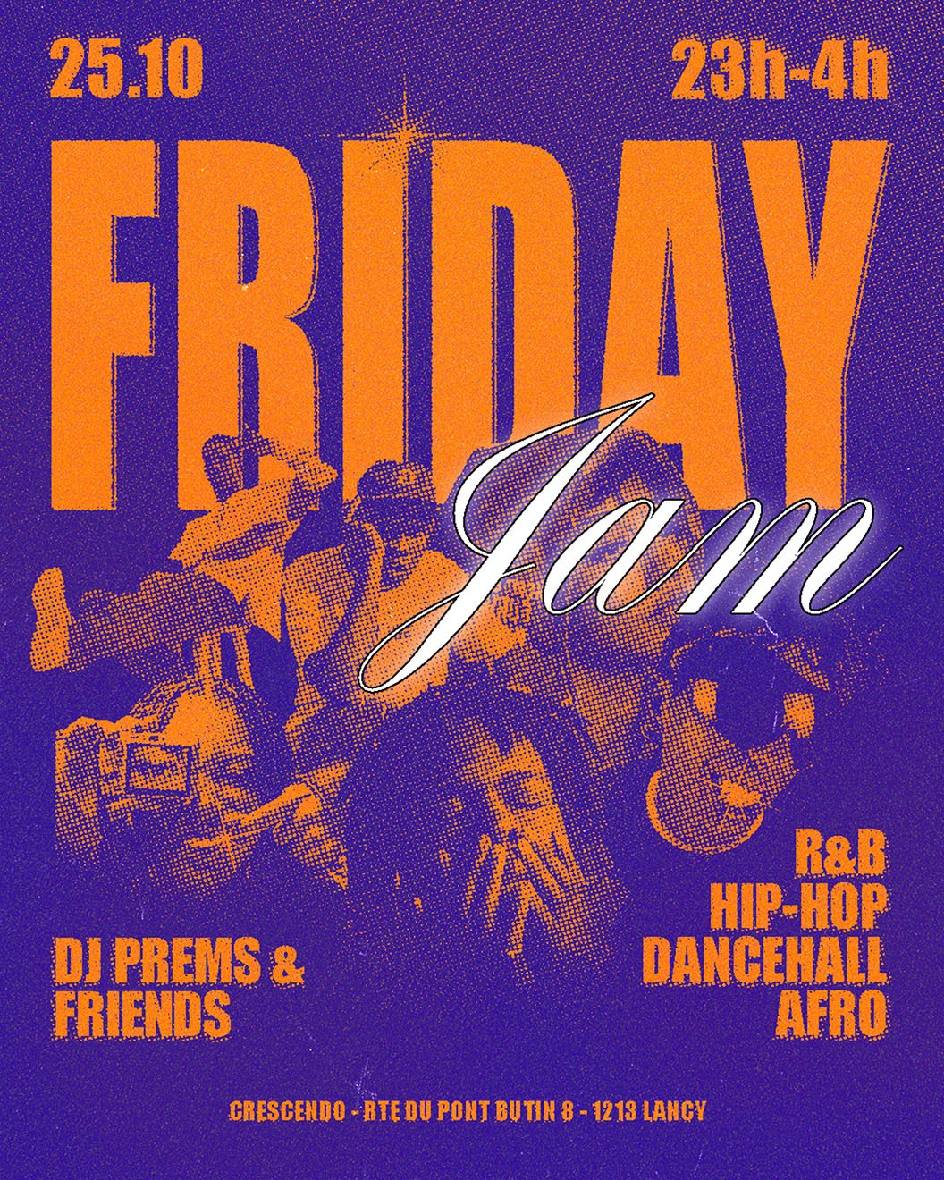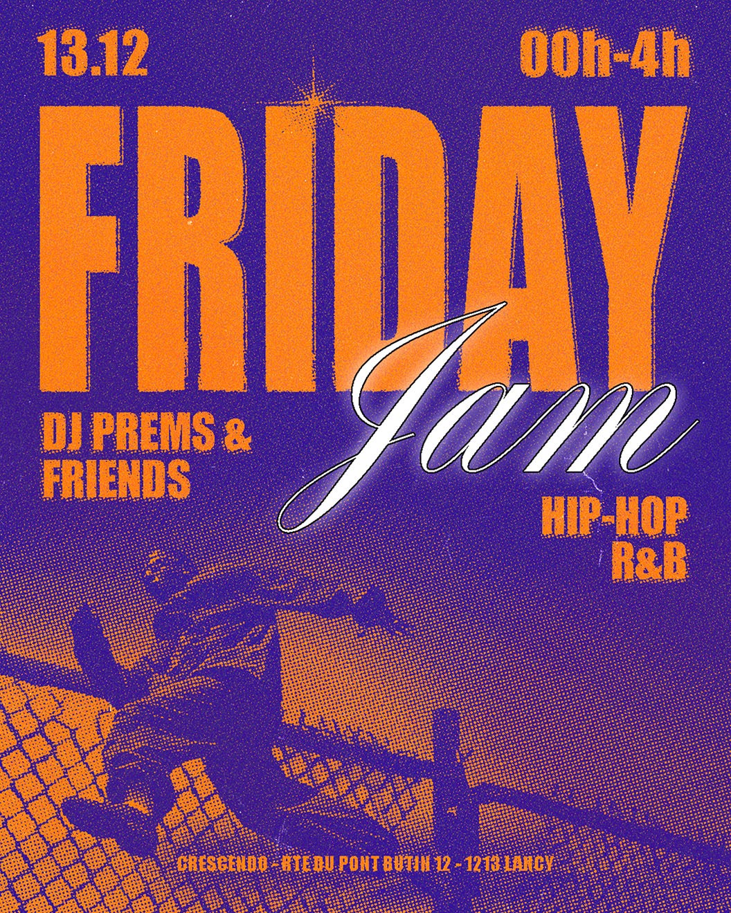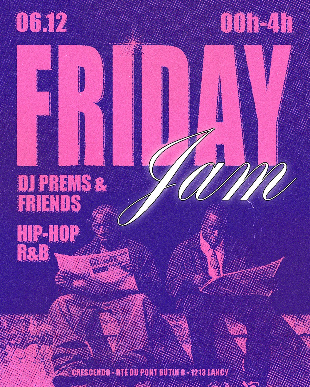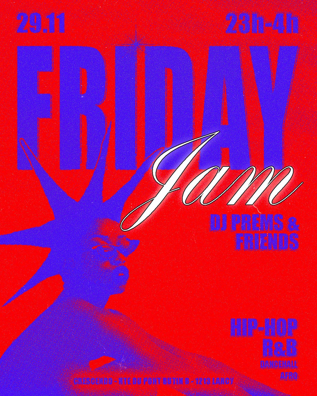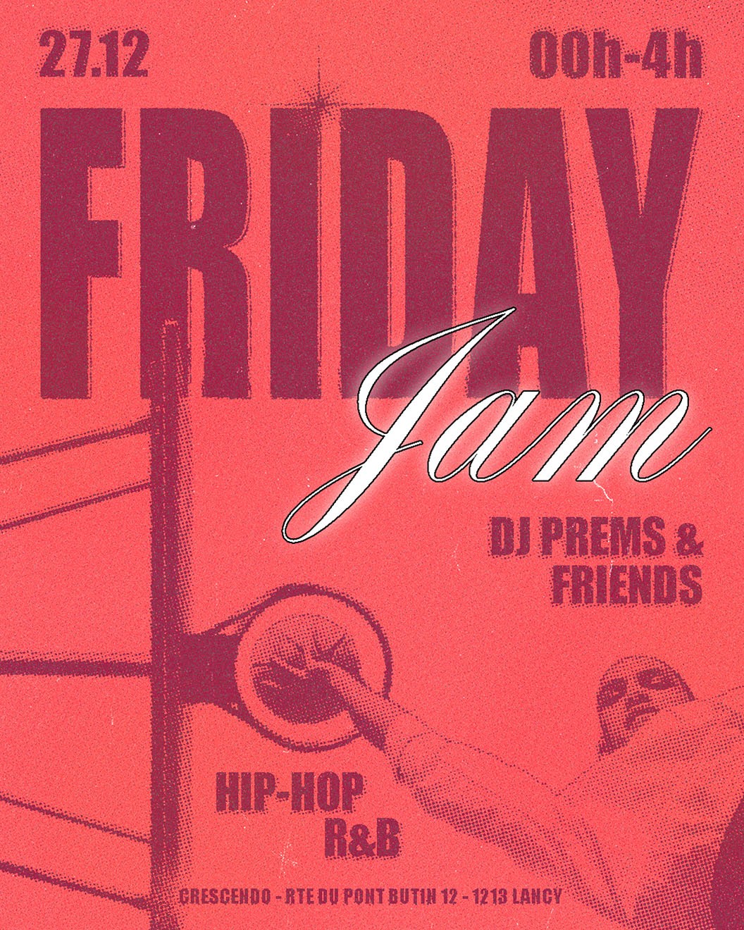 "Friday Jam", a Hip-Hop and R&B night in Geneva, was conceived as a raw and electrifying celebration of urban culture. The art direction drew from underground aesthetics, playing with bold contrasts and textured visuals to capture the energy of the night. The identity radiates vibrancy and edge, reflecting the intensity and spontaneity of the event.